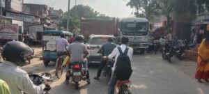 कप्तानगंज चौराहे से लेकर वायरलेस चौराहे तक भीषण जाम की समस्या का करना पड़ रहा सामना