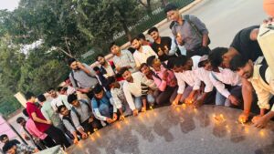 जौनपुर:-सोमवार को दिल्ली में हुए भीषण बम विस्फोट की घटना सबको हिला दिया है वहीं शोक व्यक्त करते हुए छात्र संघर्ष मोर्चा के सदस्यों ने वीर बहादुर सिंह पूर्वांचल विश्वविद्यालय परिसर में कैंडल मार्च निकाला। इस दौरान सभी प्रतिभागियों ने मौन रखकर मृतकों की आत्मा की शांति के लिए ईश्वर से प्रार्थना की।