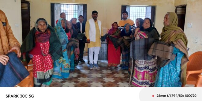 अम्बेडकरनगर: अटल बिहारी वाजपेयी की 101वीं जयंती पर बरही एदिलपुर में कंबल वितरण।