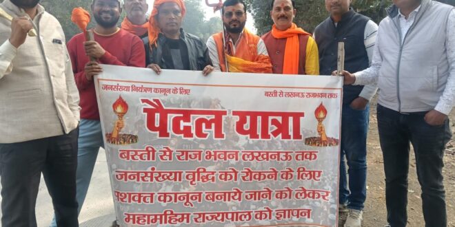बस्ती। जिले के गौर थाना क्षेत्र में हिन्दू विश्व महासंघ प्रदेश महामंत्री / जिला पंचायत सदस्य प्रतिनिधि / वरिष्ठ भाजपा नेता दिग्विजय सिंह राना ने जनसंख्या वृद्धि दर को कम करने के लिए सशक्त कानून बनाने की मांग किया है दिग्विजय सिंह राना ने कहा यह सिर्फ एक पैदल यात्रा नहीं है बल्कि यह समाज के भविष्य के लिए उठाया गया एक मजबूत कदम है आज जब बहुत से लोग चुप रहना आसान समझते हैं जिस प्रकार सच्चे देशभक्तों ने सड़कों पर उतरकर साहस व युद्ध करके देश को आजाद कराया था ठीक उसी प्रकार पैदल यात्रा उसी साहस, संकल्प और जनहित की मिसाल लेकर सभी को कदम बढ़ाना चाहिए कदम भले ही थक जाएँ, लेकिन जब उद्देश्य समाज की भलाई हो तो हौसले कभी नहीं थकते।